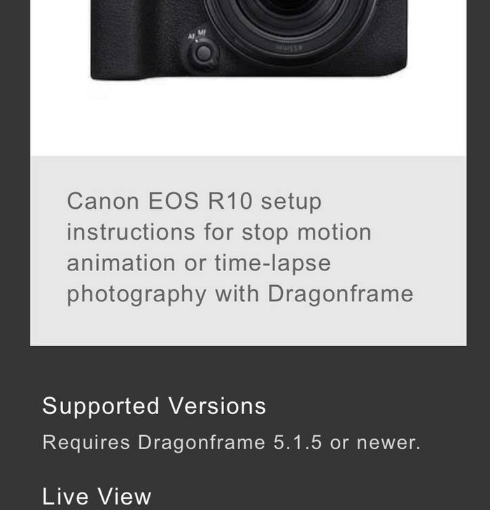 Прошу помощь, фотоаппарат CANON R10 против Dragonframe