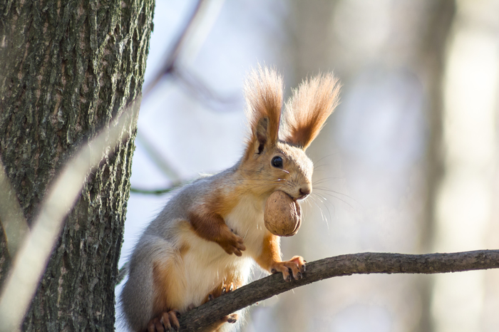 Во многих городах в парках водятся белки. Где-то почти ручные, где-то не очень. Но кто бы мог подумать, что они заведутся и у нас. Ещё пару лет назад белку встретить было практически невозможно. И лишь редкие счастливчики видели рыжий хвост промелькнувший на дереве. А теперь сложнее найти место где их бы не было.