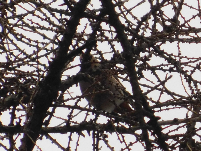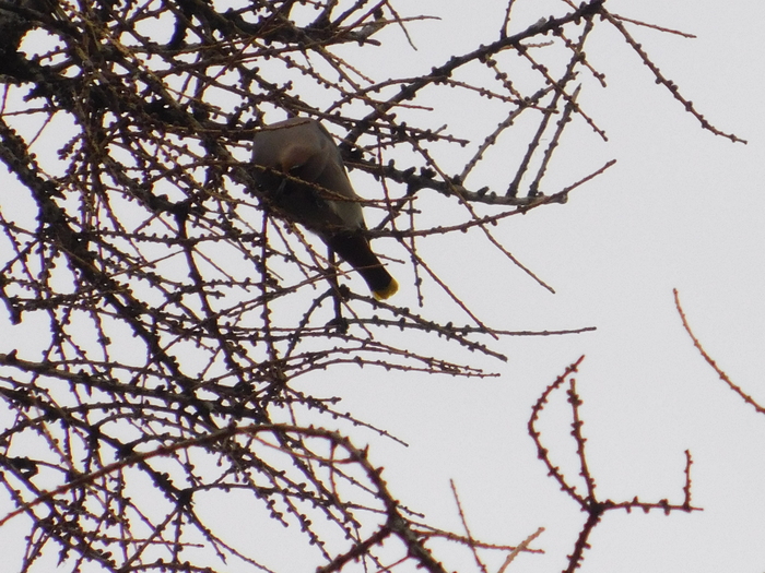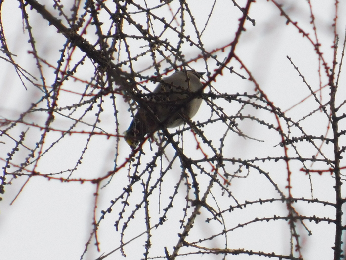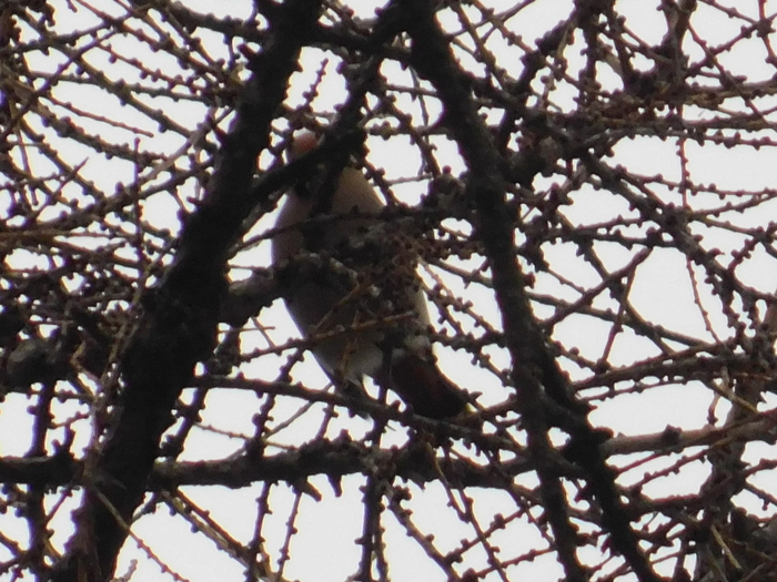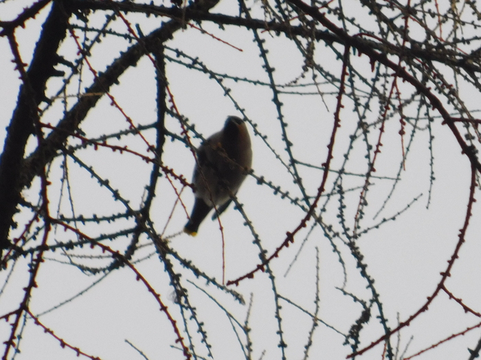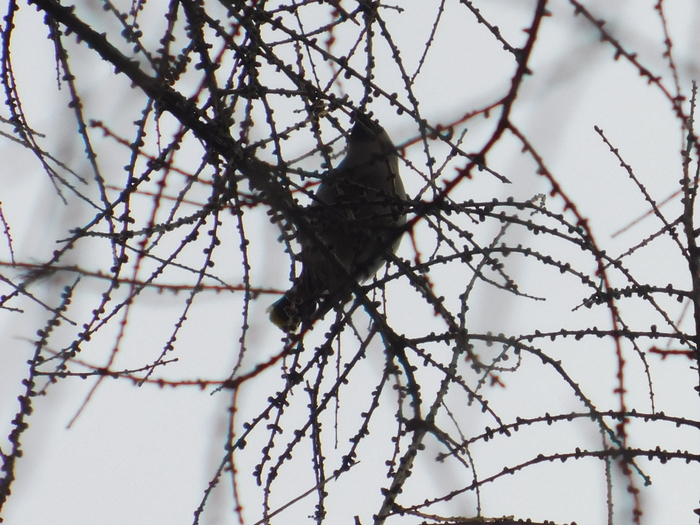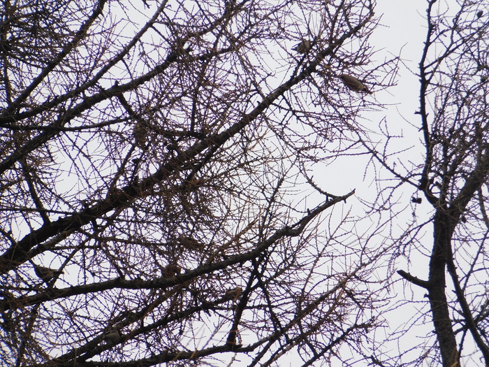 ЦПКиО очень хороший парк для бёрдвотчинга. Тут и внутренние пруды и Большая Невка и Средняя Невка. Есть и водоплавающие и лесные птицы. Тут очень много кормушек и дуплянок. Кормушки часто большие и красивые. А такой величины дуплянки, которую мы увидели рядом с дворцом, я никогда не видел. Туда вполне орёл средних размеров может влезть. Орлы правда в дуплянках не живут))) Синицы едят с рук. Людей они не бояться. Свиристелей мы видели здесь в двух местах. На берегу Средней Невки и недалеко от катка. В обоих случаях они кормились на лиственницах. Сидели на большой высоте. Сфотографировать их получилось на пределе возможностей моего аппарата. Жаль, они ведь очень красивые...