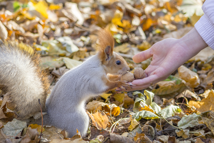 Теперь, гуляя по парку, люди смотрят на белочек, а белочки - на людей