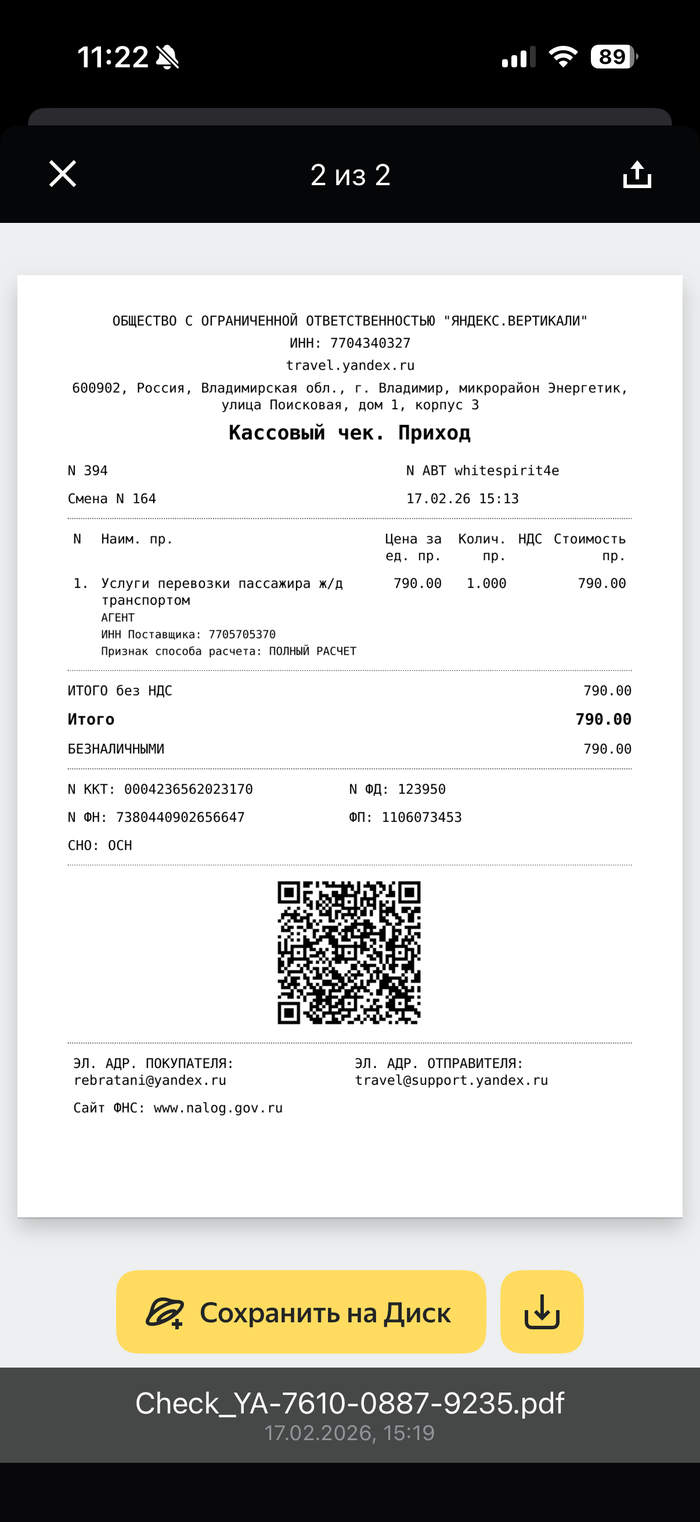 Времени до ближайшей электрички оставалось совсем немного и мама, опасаясь, что не успеет попросила купить ей билет онлайн. Я купила билет через приложение «Яндекс электрички», отправила ей билет и все чеки об оплате.