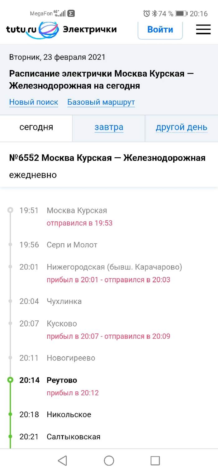 Электричка по направлению Москва Курская - Железнодорожная №6552