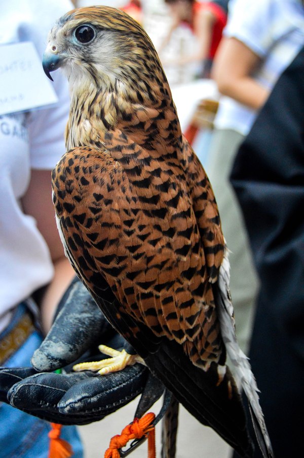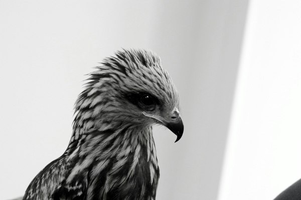 За свою невероятную агрессию, страсть к беззвучному перемещению с неожиданный появлением и исчезновением и невероятно злобный из-за красной-оранжевой радужки и прищура взгляд птаха сразу же получила имя Люциуса, как воплощения вселенского зла. Однако в течение недели птица быстро поняла, что её новая компания опасности не представляет. Как только птица привыкла к новой обстановке и своему дуплу на холодильнике, я начал процесс приручения. Сначала еда в руке, которая наглым образам бывала вырвана из рук и унесена в укромный уголок. Часто бывали атакованы и руки. Обычно в этих случаях используют толстые кожаные перчатки для защиты рук от клюва и когтей, но я счёл эту меру излишней. После появления устойчивой связи между руками и едой я пошел дальше. Для кормления надо было сесть на руки. Приходилось терпеть, мириться с весьма болезненными и зачастую основательными укусами, но и эта задача была выполнена. Осталось лишь объединить досуг, и добиться взаимного присутствия. Тут уже играют роль личные качества и уважение. Но когда птица явно понимает, что ты не собираешься её есть, и кормишь её, а так же поишь и лечишь...