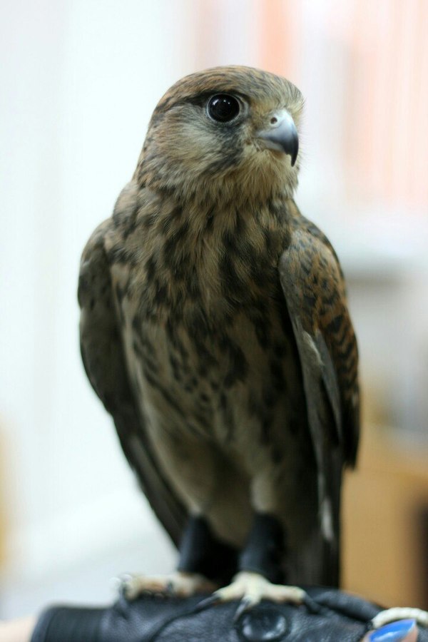 Испуганный, убегающий от людей хищный комок перьев до меня был на содержании нескольких разных волонтёров. К нам в Центр он попал после получения перелома ключицы и закрытой черепно-мозговую травмы. Птица почти наверняка больше не сможет вернуться в дикую природу. Когда работа моих коллег по выхаживанию была завершена, пока ещё безымянная сплюшка (Otus scops, Совка обыкновенная) предположительно мужского пола направилась ко мне сначала на передержку, а теперь и вовсе осталась на ПМЖ.