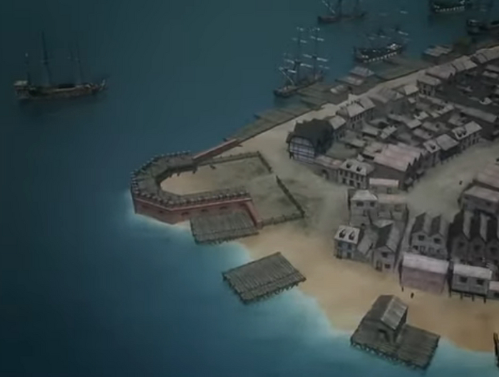 Но кто же будет работать на дядю, если перед ним открываются широчайшие перспективы Карибского моря и практически полная безнаказанность? Даже местоположение косы с глубоким дном для причала и прекрасной гаванью как будто прикрывало паскудников от житейских бурь и ураганов. Как мухи на мёд слетались они со всего мира и развернулись там неслабо. Разрешите представить - Порт Ройал.