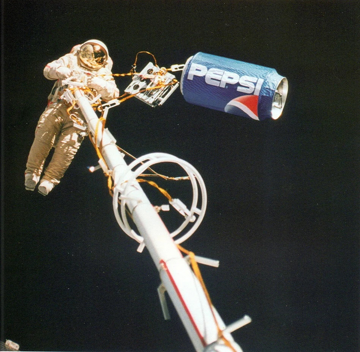 А на Земле в это время СССР не стало. Как уже писал выше, финансирование упало до таких объёмов, что в случае чего денег не было банально затопить станцию! Чтобы «Мир» жил, предлагались разные варианты отказа от тех или иных экспериментов, программ, от запуска новых модулей. Дошло до того, что в привозимых «Прогрессами» пайках не хватало продуктов. Для сбора средств космонавтам пришлось в 1996-ом даже рекламировать Pepsi во время ВКД. Снова отмечу, что первоначальный заложенный срок жизни станции в 3 года был пересечён и требовался ремонт. Кроме описанных проблем выше, до 1994-го были ещё отказы «Курса», гиродинов (ради установки новых пришлось даже демонтировать сауну), бортовой электроники. Космонавты чинили систему регенерации воды, выработки кислорода, системы связи. Были отказы и «Союзов», и скафандров. 10 января 1994 года произошёл отказ ручки управления «Союза ТМ-17», из-за чего он чуть не протаранил станцию. Опаснее была стыковка «Прогресса М-24», при которой из-за автоколебаний грузовик легко, но всё-таки 4 раза ударился о корпус «Мира» и солнечные панели.