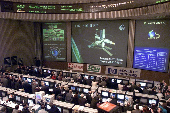 ЦУП во время затопления «Мира». Наличие рекламы в нём — характерная и печальная черта тех лет.