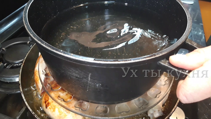 В моём случае кожица цыплёнка немного подгорела к чугунной поверхности саджа, если у вас случилось что-то подобное, то не стоит расстраиваться это никак не повлияет на вкус итогового блюда!