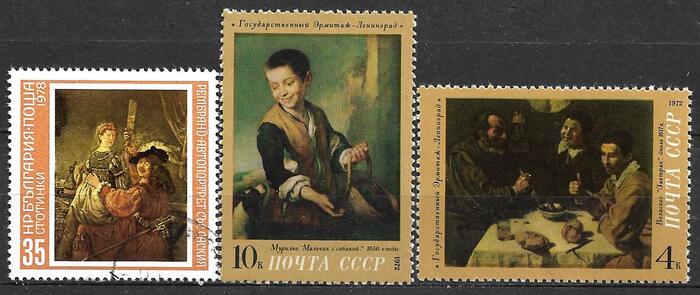 Тоже не часто, всё же улыбки можно еще найти на марках, посвященных теме живописи. Что поделаешь, и в живописи радостные лица не часты. Рембрант, Мурильо и Веласкес подарили нам улыбки своих персонажей.