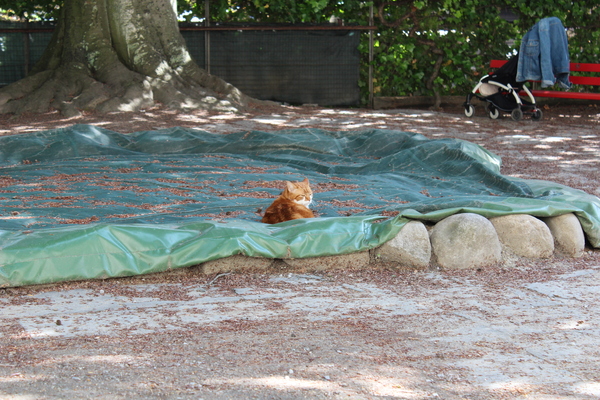 Действительно, зачем лежать в корзинке, если есть брезент?