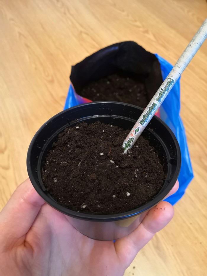 Занес его домой, чтобы посадить желудь в этот горшок. Но как-то замотался и горшок простоял 3 дня. Решил убрать из горшка растение, а там