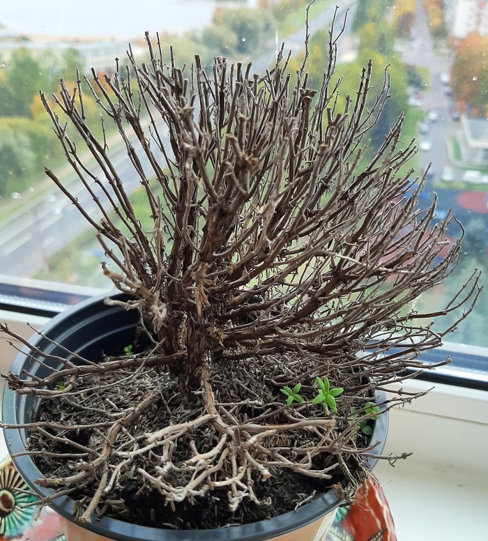 Все лето на террасе (12 этаж) рос чабрец, время от времени с него срезались веточки и добавлялись в чай. Но пришла осень и