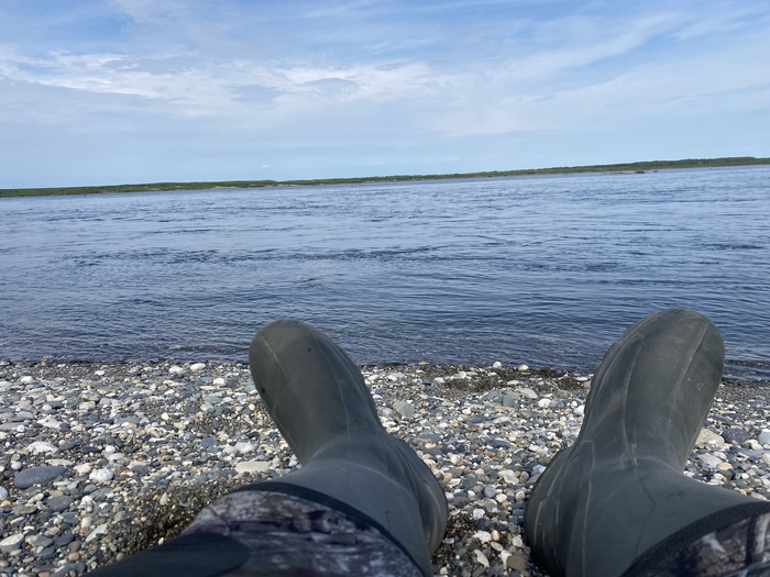 Ждём рыбу… море водки позади, за спиной Охотское море…