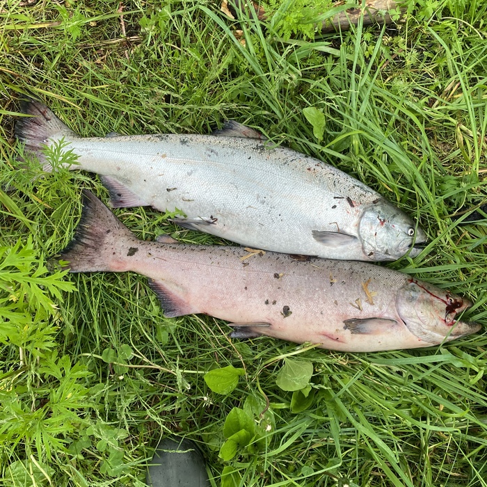 Долгожданный улов! Самец и самка. Примерно 9 и 12 кг соответственно. Во избежание вопросов - всё (да да, все жалких два хвоста) на блесну и по лицензии.