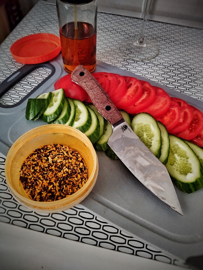 Кстати, достаточно вкусная тема- помидоры, огурцы, соль, кунжутное масло и лимонный перец. Китайский чай и Saldens Triple IPA тоже вкусные)))