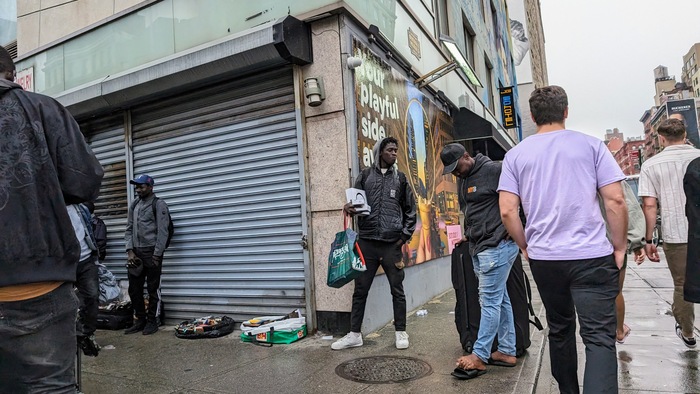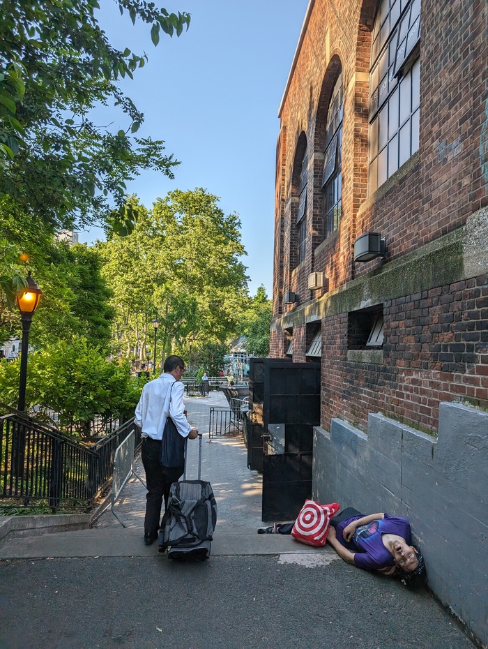 -рядом находится приют для бездомных. В последнее время бедолаг в очереди все больше. Многие из них - свежеприбывшие Мигранты с Юга. Про них подробнее тут: