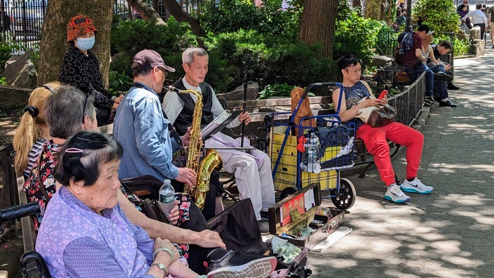 -в Парках Чайнатауна всегда куча народу. Помимо волейбола, настольного тенниса и дыхательных практик Чигонг, часто играют в какие-то азартные игры.