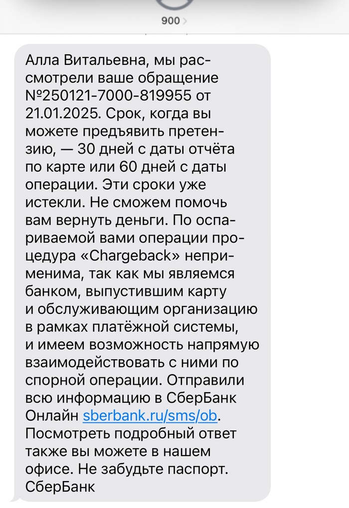 ✔️ 4. Чарджбек через банк — отказ без доказательств