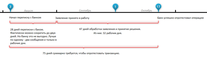 Вот и цикл опротестования операций, узнаваемый среди обычных людей, как процедура чарджбэка. Надеюсь, пост получился интересным.