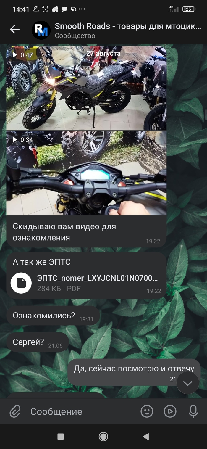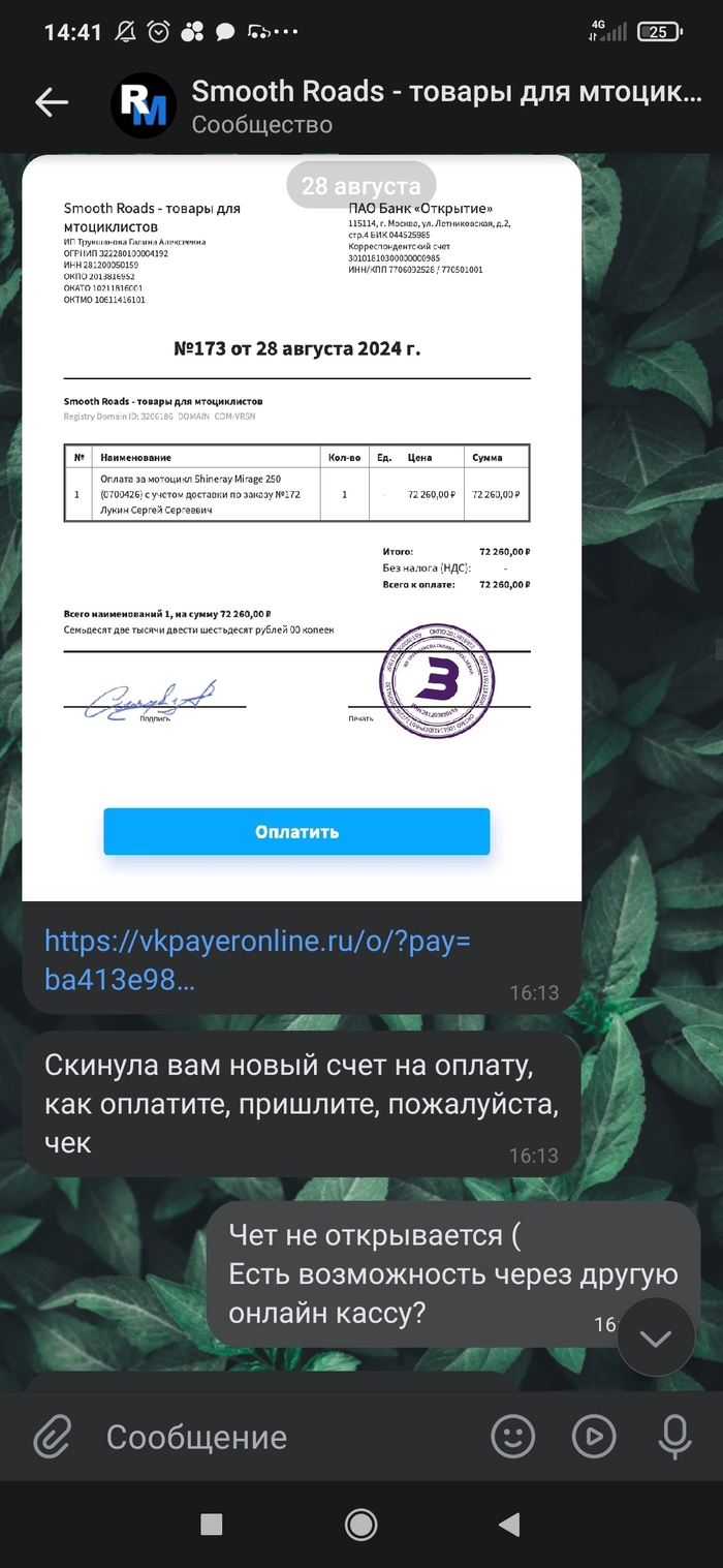 Со мной произошла следующая ситуация. 28.08.2024г я решил приобрести мотоцикл Shineray Mirage 250 в группе ВК