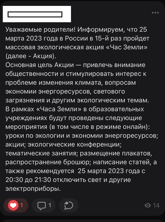 Про час земли. Судя по коментам (и по мне в частности), единицы понимают суть акции. Что экономить уголь никто и не собирается, просто "привлекают внимание к проблеме". Привлекли. Дальше что? Ничего.
