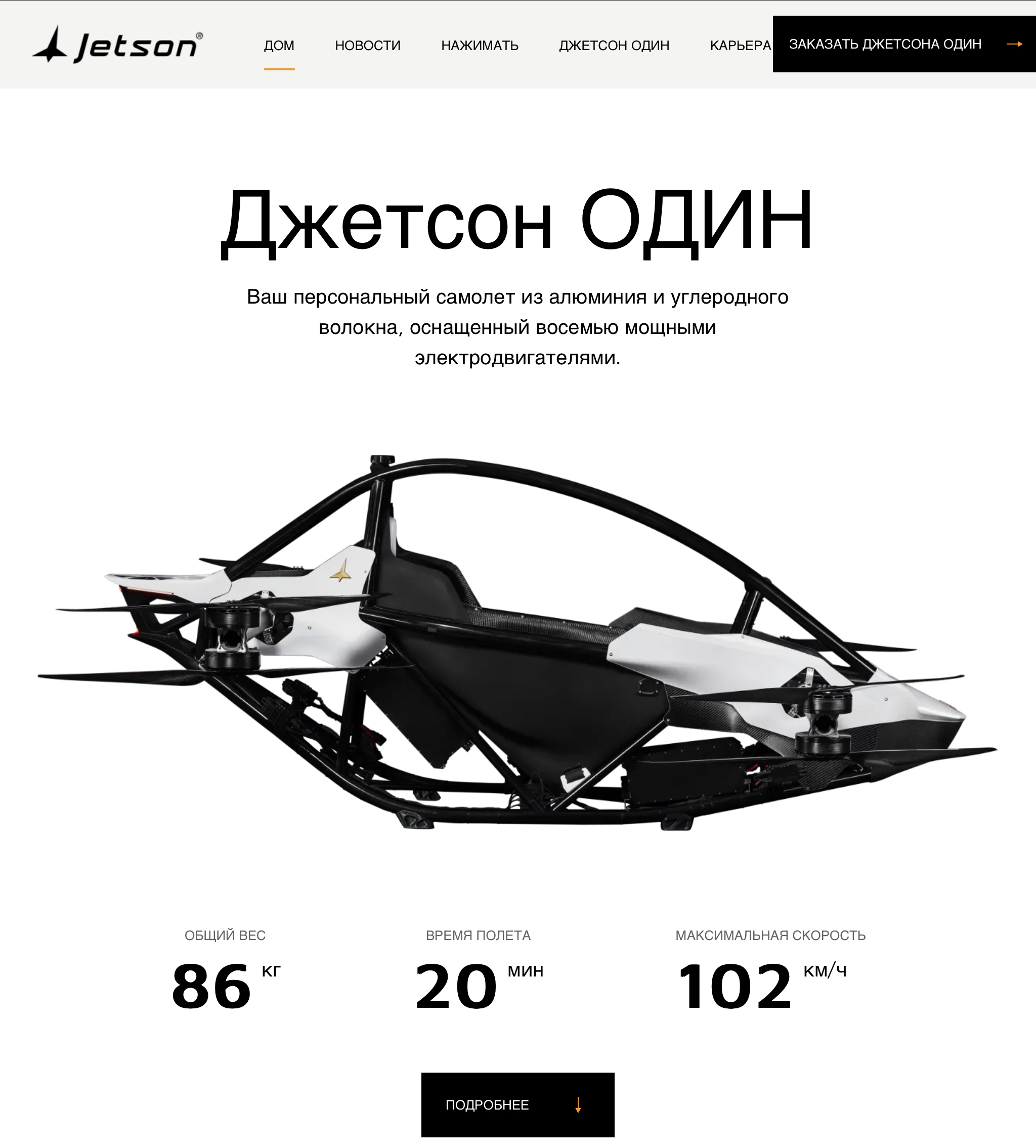 Польская стартап-компания Jetson производит персональный сверхлегкий летательный аппарат, который производится и тестируется в Ареццо, Италия . Для управления одноместным сверхлегким летательным аппаратом оператору не нужна лицензия пилота или специальная подготовка в США.