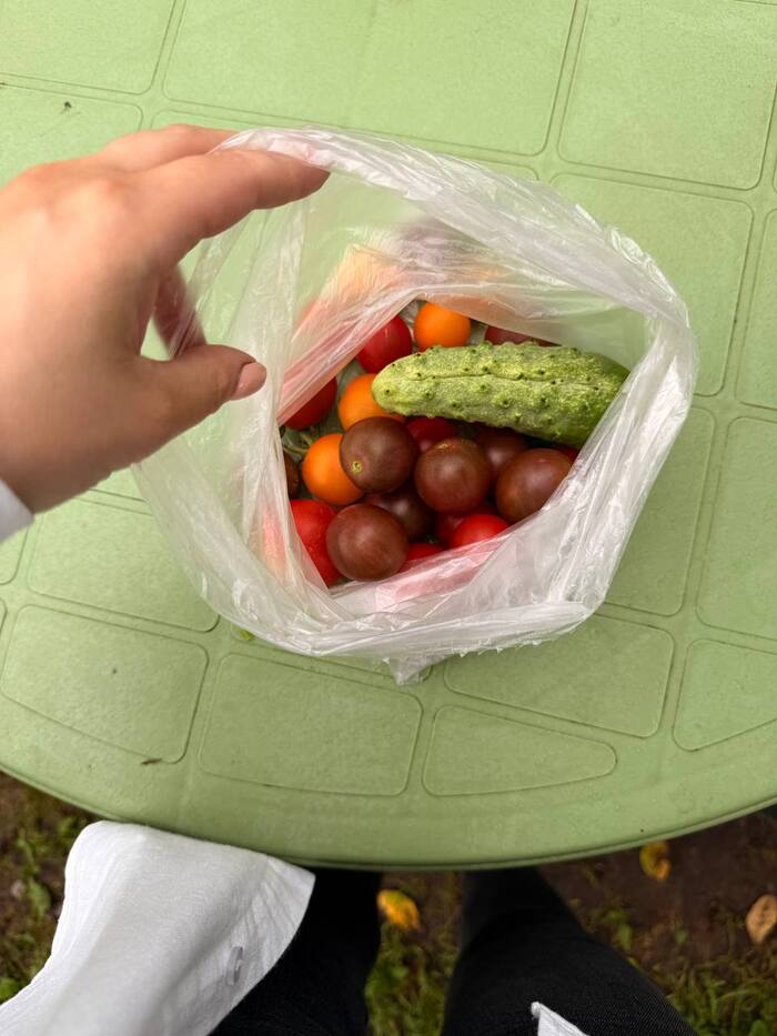 Теплица. Такая прикольная штука, по сути ящик с помидорами и огурцами. Всегда можно сделать салат. Как круто что помидоры растут так долго) можно 3 месяца срывать и есть. Жена ухаживала постоянно, при этом была киллером. (медведкам она не понравилась)
