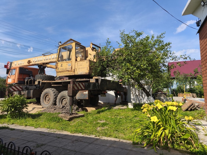 Как раз про подъезд были и основные сложности. Перед домом, со стороны дороги была канава. Нужно было организовать подвоз сыпучих материалов, строительных и строительной габаритной техники.