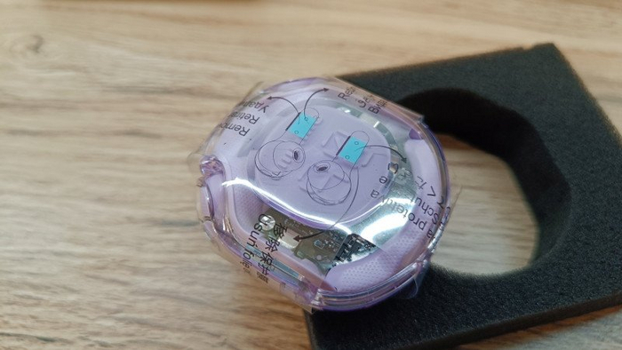 Небольшая разборка. Внутрь ножки добраться без поломки мне бы не удалось, а вот капсулу я вскрыл с большим усилием. Края были обработаны небольшим слоем герметика или клея. На корпусе динамика присутствует маркировка «HY».