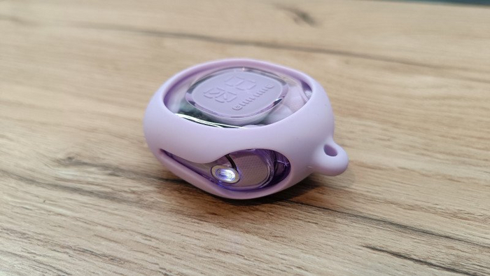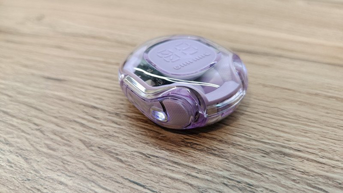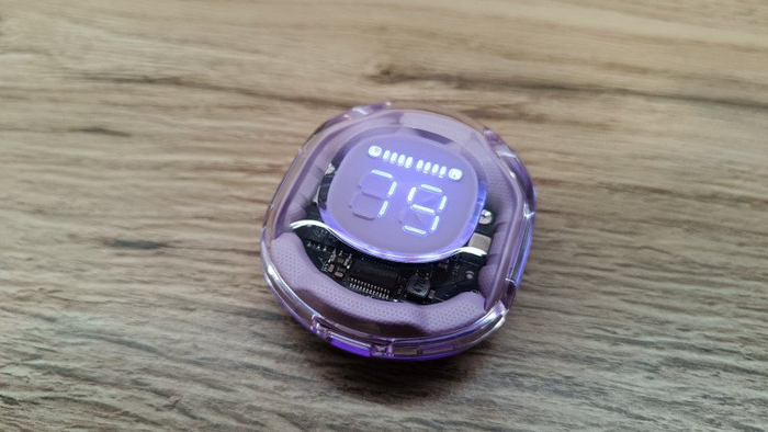 Бокс и наушники оказались полностью разряжены, поэтому поставил на зарядку. Индикаторный светодиод бокса горит оранжевым цветом, а после полного заряда переходит в зеленый цвет.