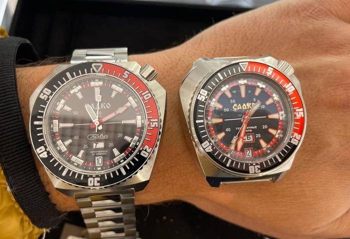 Однозначно, часы заслуживают внимания, они получились очень сбитыми и наполненными деталями. Казалось бы, громоздкие на фотографии часы на запястье сидят идеально. А купольное сапфировое стекло даёт объёма циферблату. Круто, что есть часовые любители, которые берутся за перевыпуск легендарных моделей советских часов.