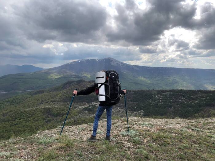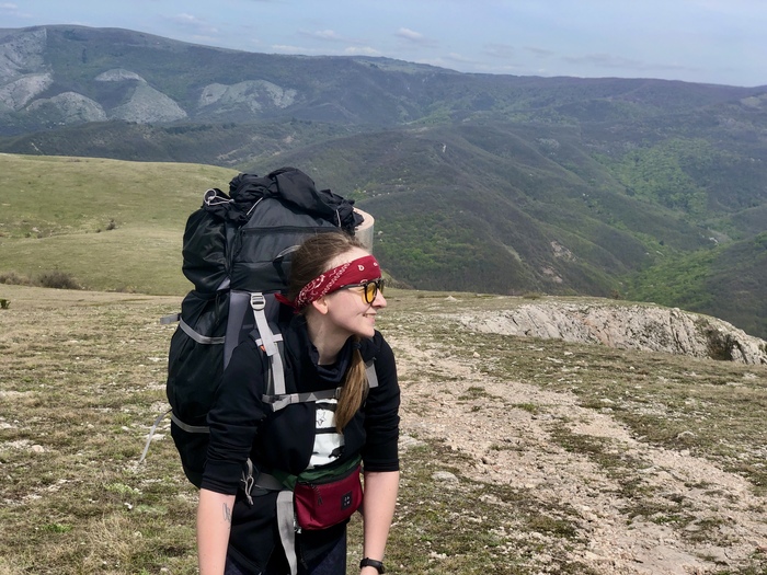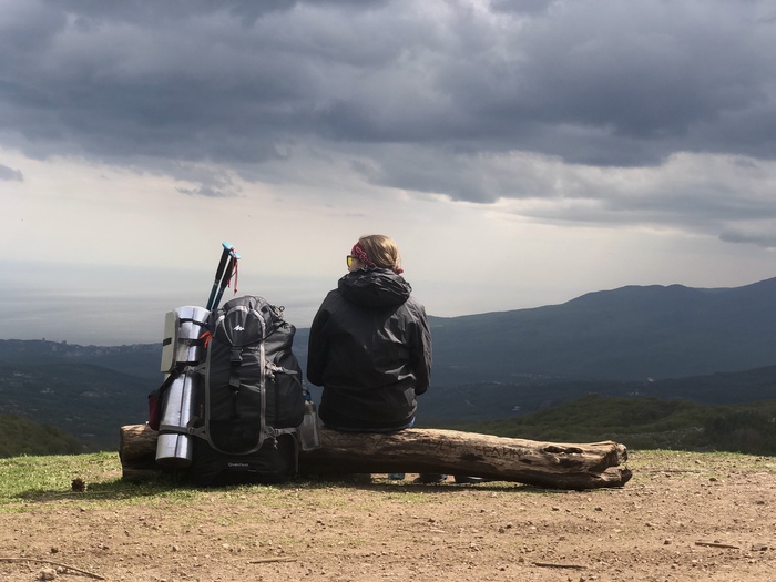 День 1. В планах подняться на Чатыр-Даг, найти место, где можно скинуть рюкзаки, чтобы пойти в пещеры, в худшем случае – пойти с рюкзаками и оставить их на кассе; пройти максимум расстояния до темноты, в идеале спуститься к м\д\с Ангарский перевал.