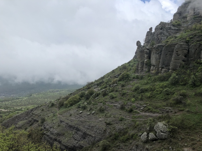 День 3. Цель – пройти Южную Демерджи, спуститься на Солнечную поляну, затем в Долину Привидений, затем к Ореху Никулина и валуну Нины, от которого отдаёт песней про медведей, спуститься к остановке у Конного клуба и уехать на автобусе до трассы, где сядем на троллейбус до вокзала в Симферополе.