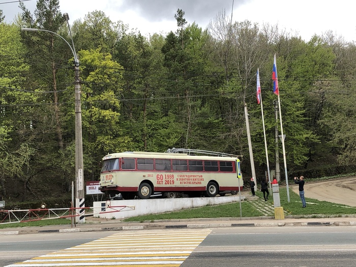У дороги надеялись наткнуться хоть на какие-то магазины, взять перекусов, но там их не оказалось. Сфоткались с памятником трамвайчику и булочке Троллейбусу, переходим дорогу, начинается вторая часть маршрута к поляне МАН (там ближайший источник) и выше вдоль Северной Демерджи по Козырьку.