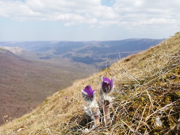 В следующий раз я отдыхал на кусочке склона с цветами, кстати они эти фиолетовые цветы называются Сон-трава, Ветреница, Прострел. На мой взгляд дерьмовые названия для этих милых цветов.
