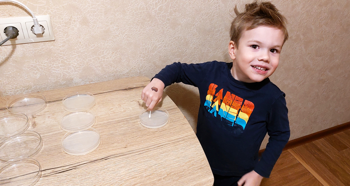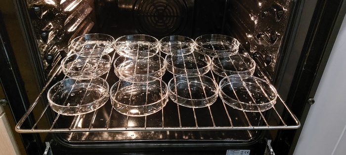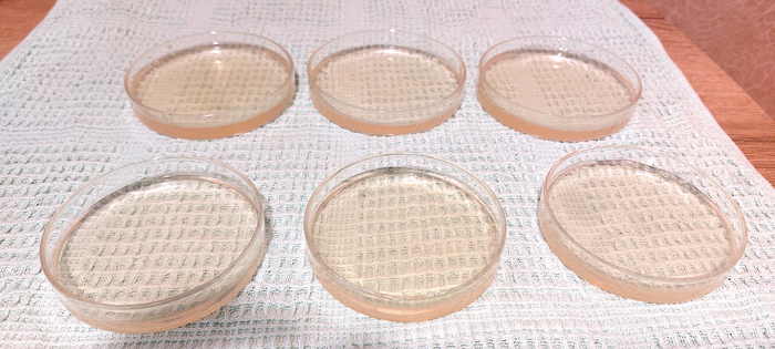 2. Делаем раствор агара и наполняем чашки петри так, чтобы он полностью закрыл дно. Оставляем раствор остывать пару минут, а потом отправляем чашки на час в холодильник, чтобы он как следует застыл.