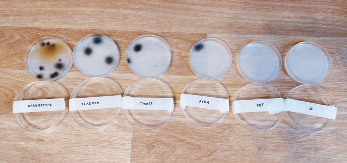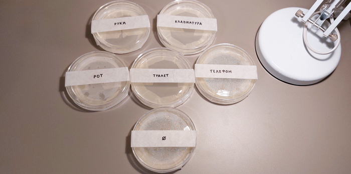 Если бактерии найдутся, нам кажется их должно быть больше в туалете, а меньше всего на руках. Проверим…
