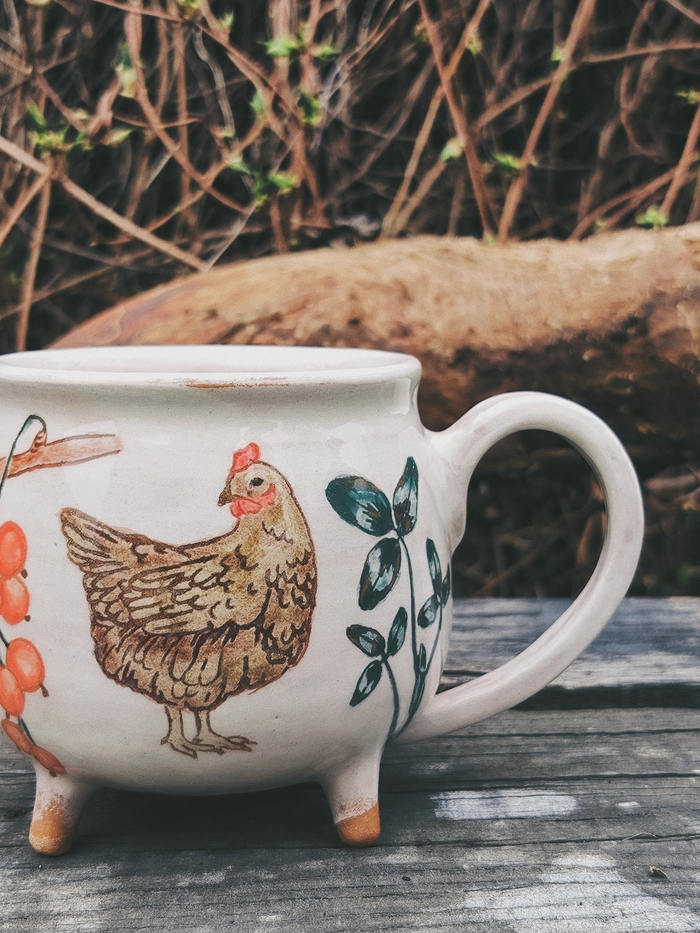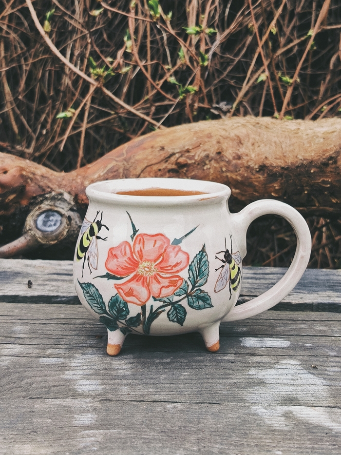 Старательно выводила тонкие детали, наполняла цветом лепестки шиповника и самих пчёл. И вот, когда всё было готово, чашка отправилась на финальный обжиг.