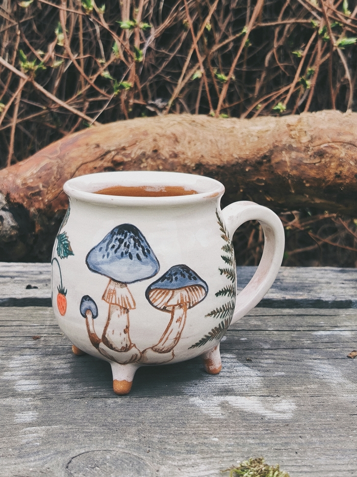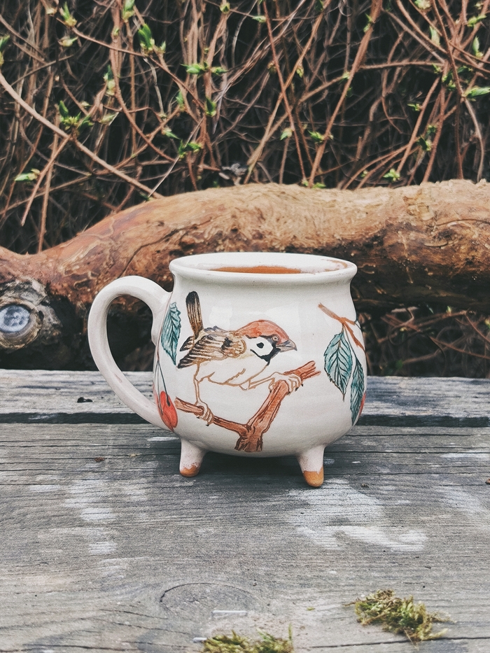 Обжиг прошёл удачно, ангоб остался на чашке, рисунок, по прежнему радовал глаз. И я принялась покрывать глазурью.