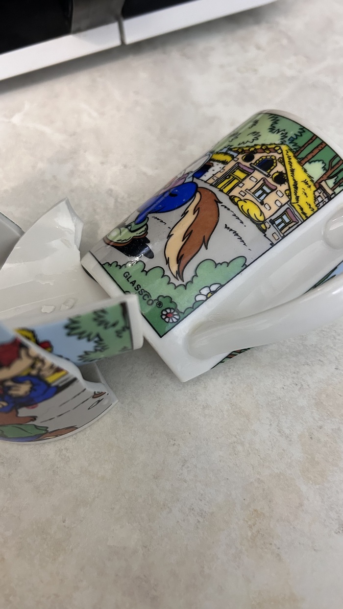 Разбила кружку 25 летней давности. Очень хочется найти такую же. Склеить эту не получается- слишком много осколков.