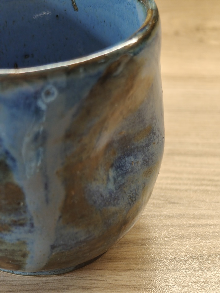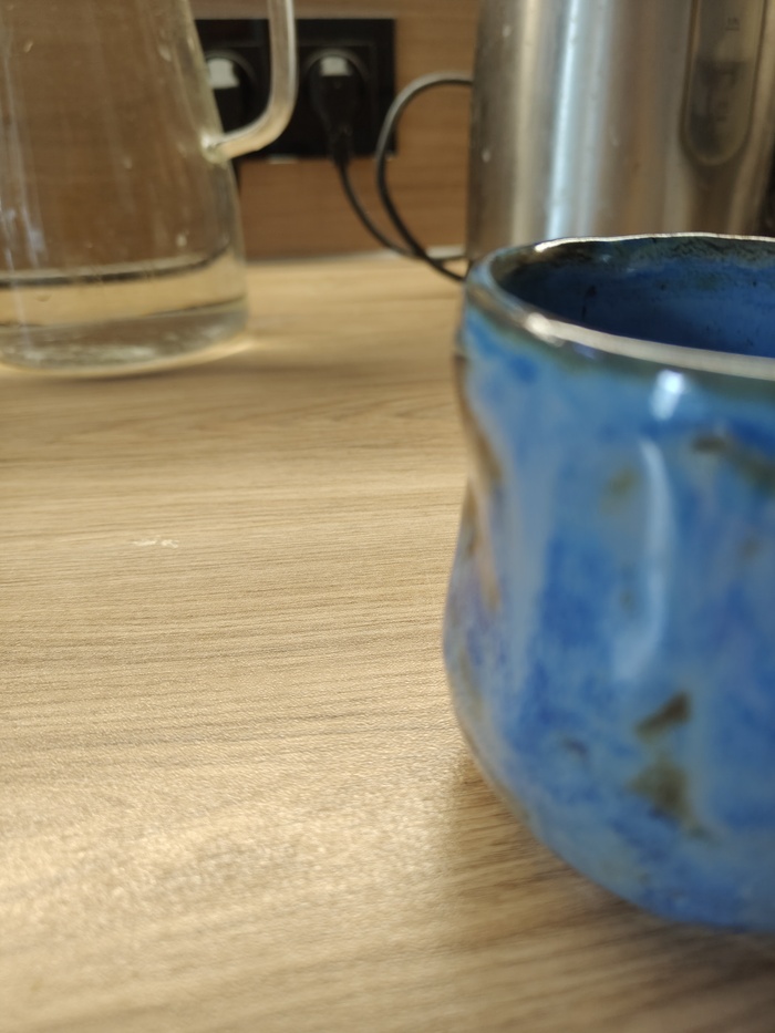 Промпт: A surreal digital photo manipulation depicts a clear glass coffee cup centered on a weathered wooden table surface. Dark coffee liquid inside the cup creates a mid-air splash formation that seamlessly transitions into a sunlit forest path. The forest scene, visible both within and extending beyond the cup's boundaries, features a winding dirt path lined with tall deciduous trees, bordered by lush green grass and purple bluebells. Golden sunset light filters through the tree canopy, casting dappled shadows on the forest floor. Multiple dark brown coffee beans are scattered across the wooden surface near the base of the glass cup, creating depth in the foreground. The composition combines warm amber tones in the background with rich brown coffee colors in the foreground. Digital photo manipulation with natural backlighting, shallow depth of field, and high resolution details.