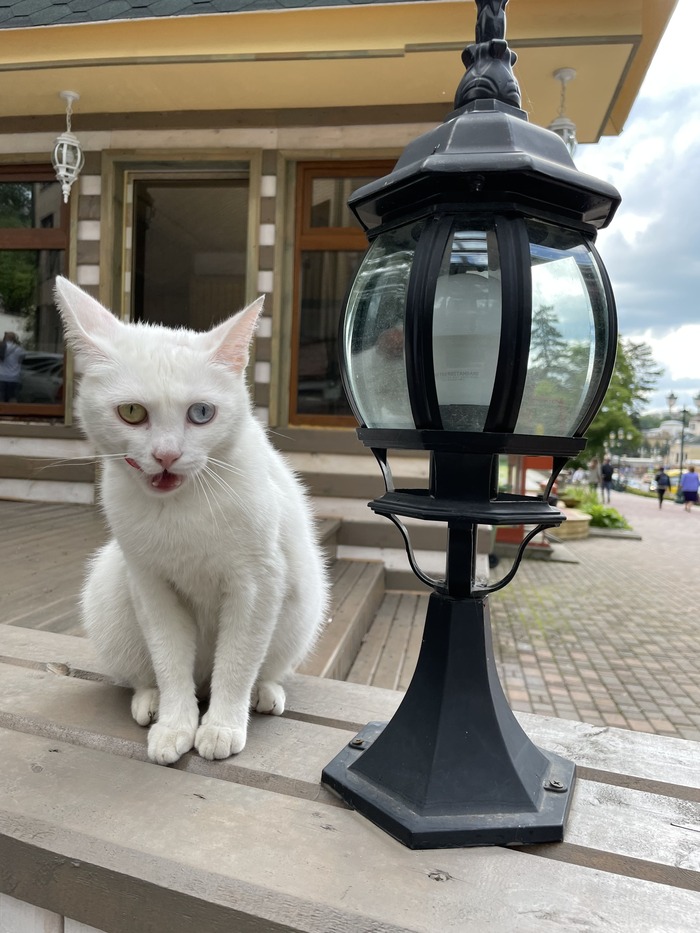 А эта белоснежная красотка с Гетерохромией была встречена уже в Кисловодске. Сначала не поняла, что от неё хотят, а потом просто забила и продолжила заниматься своими послеобеденными занятиями.