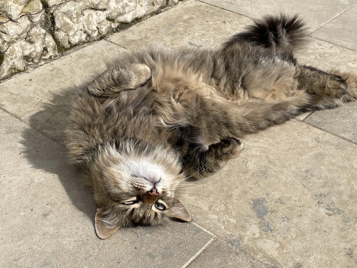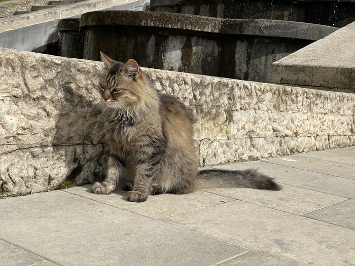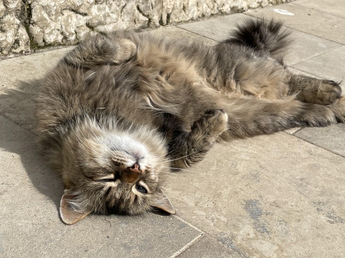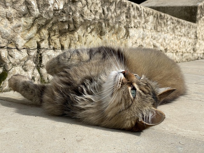 Чуть дальше, в том же Кисловодске, ближе к Курортному Парку мы встретили такое вот чудо. Завидев камеру, котик начал позировать, мол смотрите, я весь на релаксе. Хотя скорее всего, он просто решил понежится на солнце и просто покайфовать.
