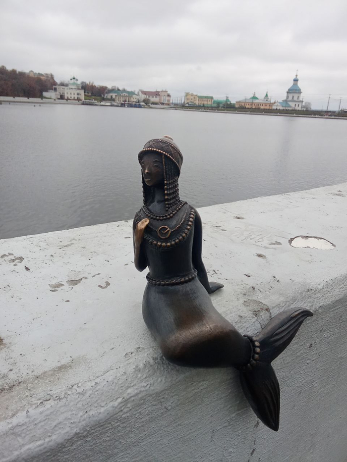 Купив мороженое, я направился к монументу Матери-Покровительнице, который возвышался на противоположном берегу залива. Пройдя по оживлённому пешеходному мосту, я сделал несколько фотографий у подножия огромной фигуры и отправился в обратный путь.