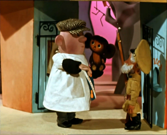 Это просто странное, отличающееся от других существо, которое очень хочет жить своей жизнью. Несмотря на общепринятое ксенофобское отношение к чужестранцам в советском кино того периода, Качанов и Шварцман преуспели в том, чтобы сделать из нелегального «безбилетника» симпатичного чужака, который олицетворяет мораль и добродетель, несмотря на абсурдные правила и жесткие требования к социальному статусу. Мультфильм о Чебурашке создала команда евреев, которые сами были людьми с неочевидным положением из-за своего происхождения. Своего героя они провели через такой же экранный опыт.