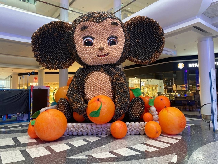 В московском ТРЦ Ривьера собрали огромного Чебурашку из воздушных шаров