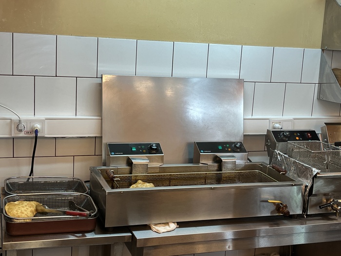 Флагманское блюдо – чебуреки в двух категорях (мясные и немясные), жареные пирожки, беляши, пончики, картофель фри.