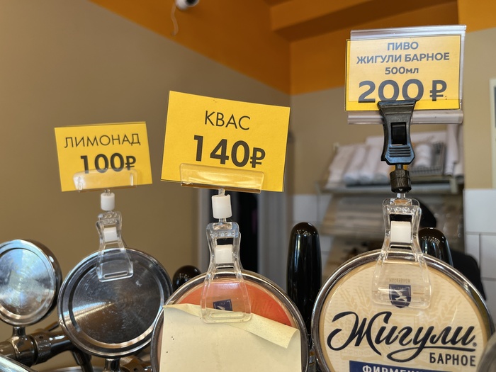 Напитки – разливное пиво, лимонад, компот, морс, квас, чай/кофе, есть некоторый ассортимент напитков в коммерческой упаковке.