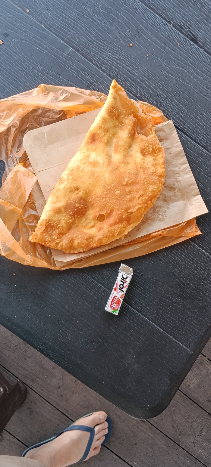 Осторожно берём чебурек в руки, надкусываем край... Я понимаю, что всё с ним прекрасно. Безупречное тесто (хрустит), достаточное количество мяса (и вкус его ровно такой, каким должен быть), ароматный сок.