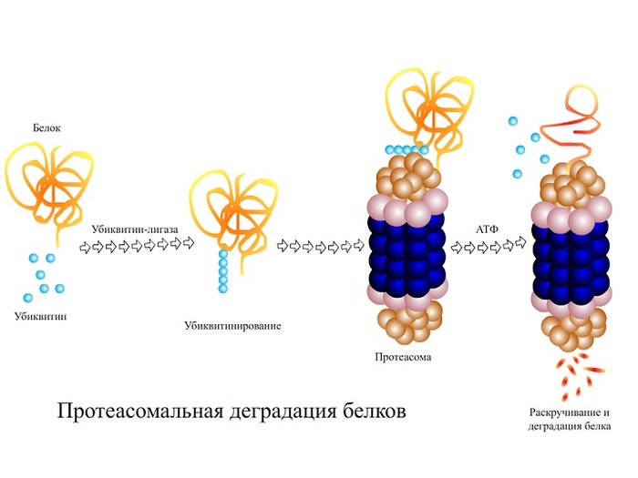 Изучение генома опухолевых клеток людей показывает, что более половины из них имеют мутации в обеих копиях гена Р53. То есть и мамина, и папина запись в таких случаях является либо испорченной, либо утерянной. В остальных случаях (когда не обнаружено мутаций в р53) находят мутации в тех белках, которые могут Хранителя Генома каким-то образом «заткнуть». Например, сделать так, чтобы к нему не доходила важная сигнальная информация (сбой в пути активации). Также на любой белок в клетке предусмотрена система подавления и даже уничтожения. В частности, уровень р53 в клетке строго регулируется несколькими различными путями. Есть, например, такой белок как mdm2 – он навешивает на р53 особый молекулярные ярлычки, делая ими пометку «негоден» (это называется убиквитинирование). Белки, обвешанные большим количеством таких меток захватывают молекулярные шредеры - протеасомы (и такая фигня в хозяйстве клетки тоже имеется). Протеасома раскручивает помеченную белковую молекулу до первичной структуры - цепочки из аминокислот, и пропускает эту цепочку сквозь себя, попутно «разрезая» на мелкие ошмётки. Так продуманно уничтожаются старые, сломанные и больше ненужные белки. Обрывки из шредера можно далее расщепить до отдельных аминокислот и повторно их использовать для сборки новых белковых молекул.